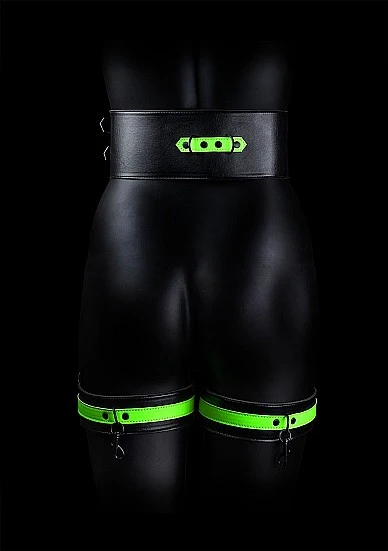 Ouch Glow In The Dark - Bonded Leather Hand & Thigh Cuffs w Belt Restraint L/XL