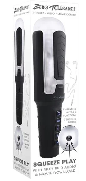 Put the squeeze on your play time with the powerful stroker that not only sucks and vibrates – but also lets you squeeze whenever you want with ergonomic squeeze grips! The seven-speed suction and vibration feel so good, especially with the super-soft and stretchy sleeve that’s made from powdered TPE to slip and slide with ease. Let your fantasies run wild as this toy comes with an erotic Riley Reid audio for inspiration - with earbuds so you can hear her up close and personal! You’ll also get a free movie download for a sensational visual experience! The case comes apart for easy cleaning, including an evacuation tube to make sure it’s ready for your next squeeze play!
